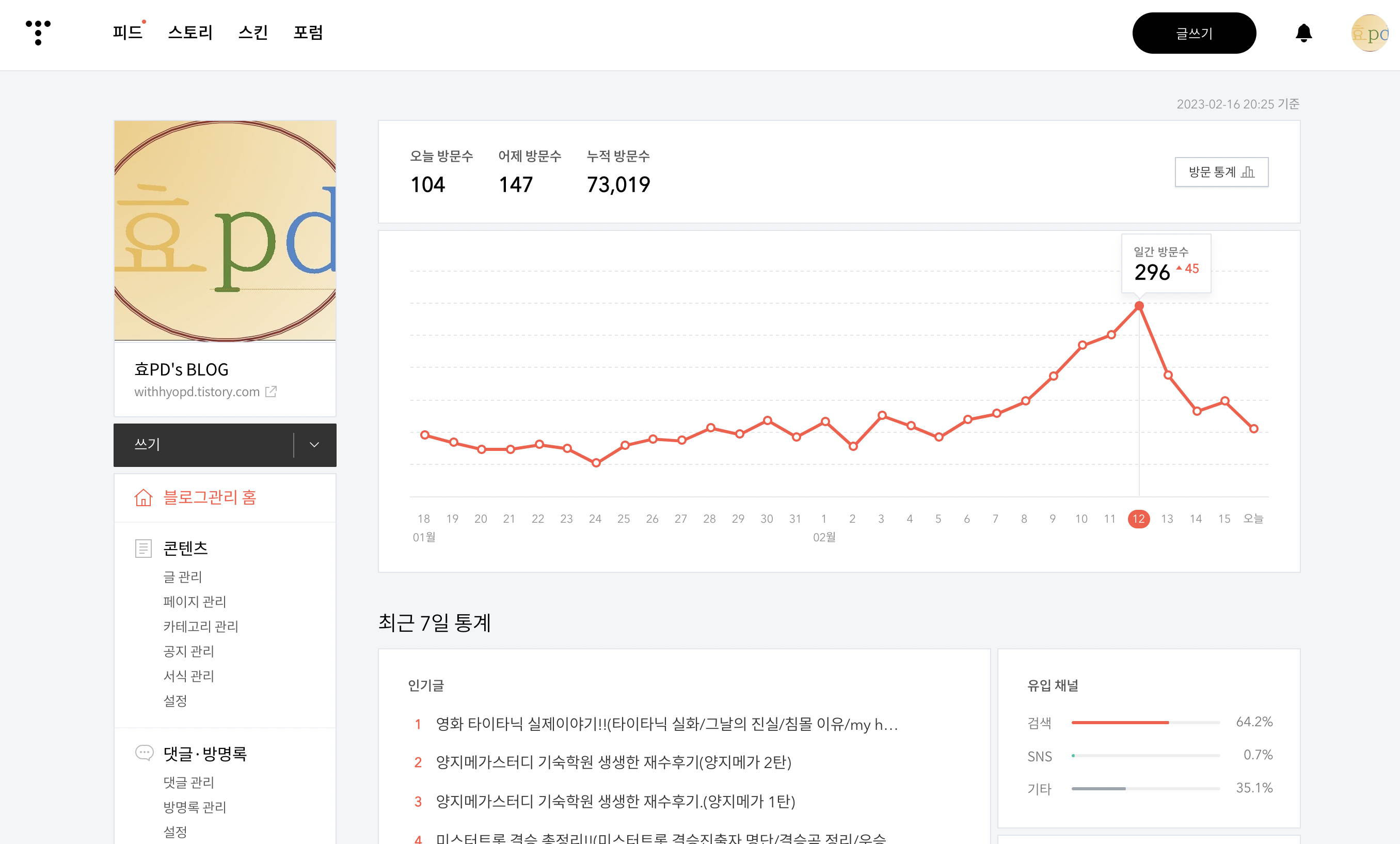 제가 3년 전에 티스토리 블로그를 개설했고, 약 1년 정도 열심히 글을 썼었는데요,